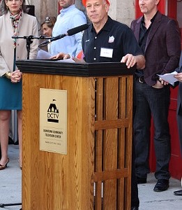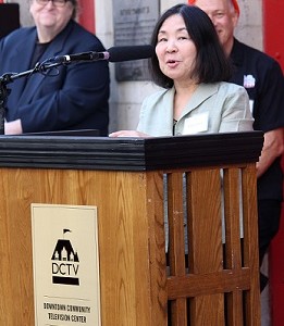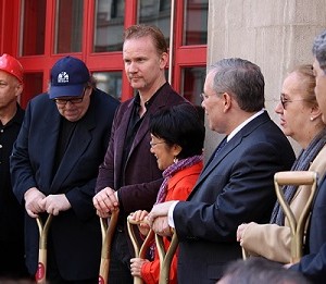 Earlier today New York City officials Kate Levin, Scott Stringer, Margaret Chin and Gale Brewer were joined by acclaimed filmmakers Michael Moore (Bowling For Columbine); Matthew O’Neill (China’s Unnatural Disaster, Redemption), and Morgan Spurlock (Super Size Me) at a ceremony to mark the groundbreaking of Downtown Community Television Center’s new documentary-only theater. The groundbreaking marks a significant milestone for Downtown Community Television (DCTV), a cultural fixture in Lower Manhattan since 1972 founded by the award-winning filmmaking team Jon Alpert & Keiko Tsuno.