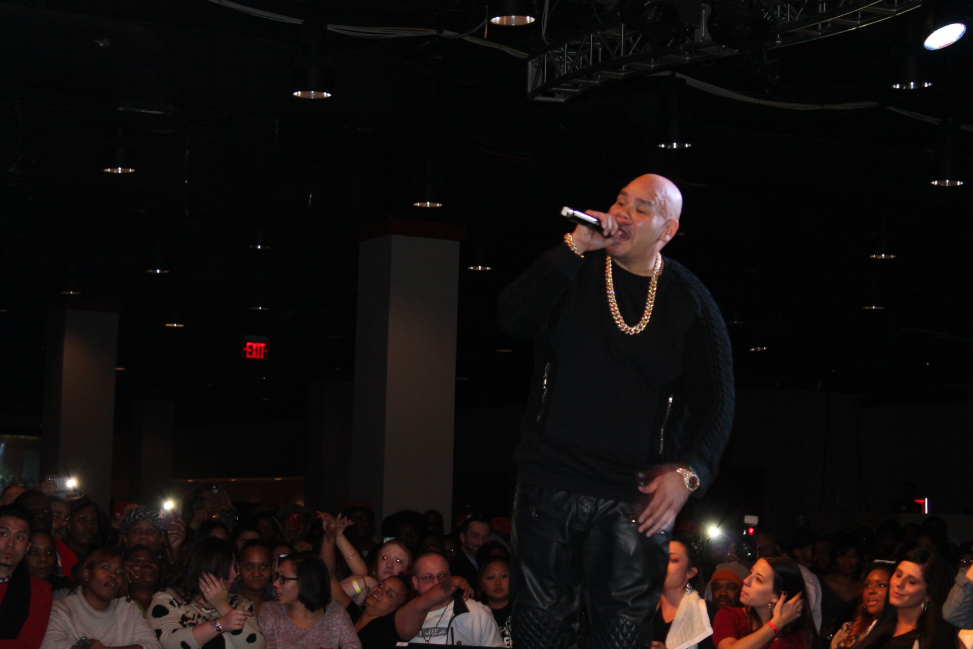 A meet and greet followed as Ja showed to be quite personable to his fans. Finally arriving after traffic issues, Fat Joe joined Ja Rule in his dressing room, filming for said reality series. Then Joe ran the stage in fashionable black leather pants and sweater lined by leather in front, which single gold chain prominently hanging from his neck and dark tinted glasses. He brought back a time where he mentioned earlier