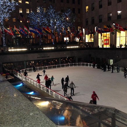 4. Delve into an amazing view with vibrant music. Go ice-skating at The Rink at Rockefeller Center.
