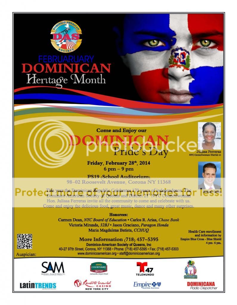 This year the Dominican Republic celebrates 170 years of independence. The Dominico-American Society of of Queens and District 21 NYC Councilwoman Hon. Julissa Ferreras invite all the community to come and celebrate with us. Come and enjoy the delicious food, great music, dance and many other surprises.