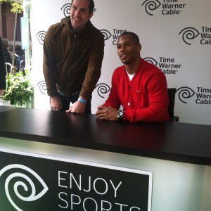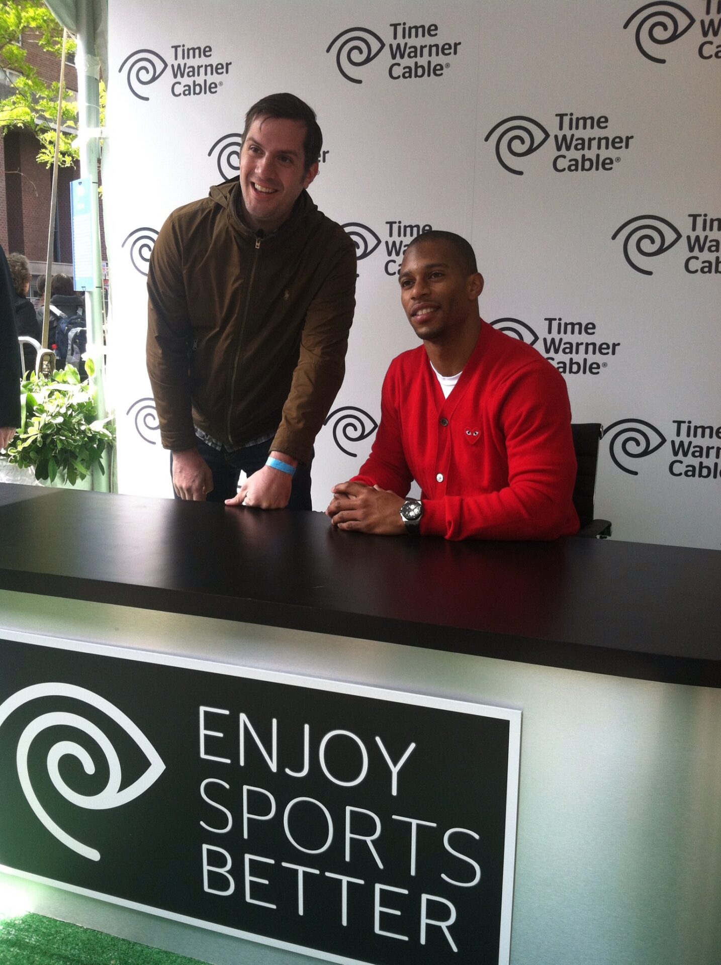 Time Warner Cable, the Signature Media Sponsor of the 2012 Tribeca Film Festival, bbrought Victor Cruz of the New York Giants to appear at the Tribeca/ESPN Sports Day on April 28, 2012. The wide receiver from the Super Bowl XLVI-winning Giants will sign autographs and pose with fans from 12 noon to 2 p.m. at the Time Warner Cable-sponsored booth, located at the corner of N Moore Street and Greenwich Street.