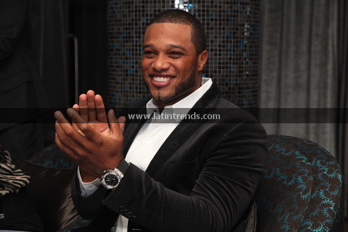 New York Yankees All-Star Robinson Canó welcomed guests to an exclusive Johnnie Walker Whisky Tasting at the Gansevoort on Friday, January 21st. He mentioned how perfect it was to commemorate his “Toast of the Town” award from the Baseball Writers Association with Johnnie Walker, and reminded everyone to please drink responsibly by taking a taxi home. Master of Whisky Stephen Wilson then led the intimate group through an entertaining and informative whisky tasting journey, including the marques Black, Red, Green, Gold and Blue.