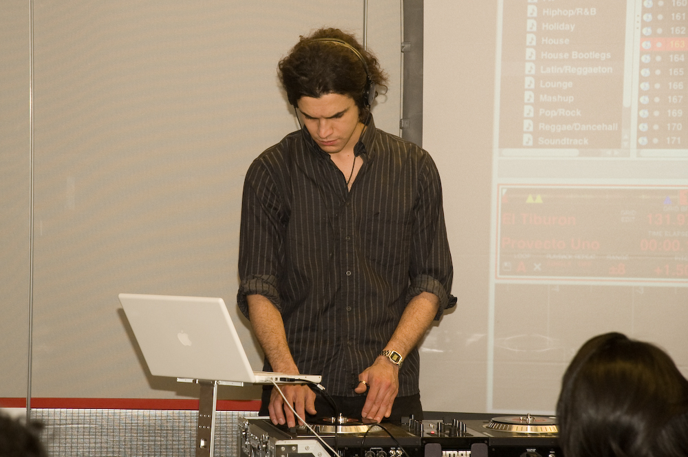 Photo 2: Local student Jorge Correa experiments on the turntables.