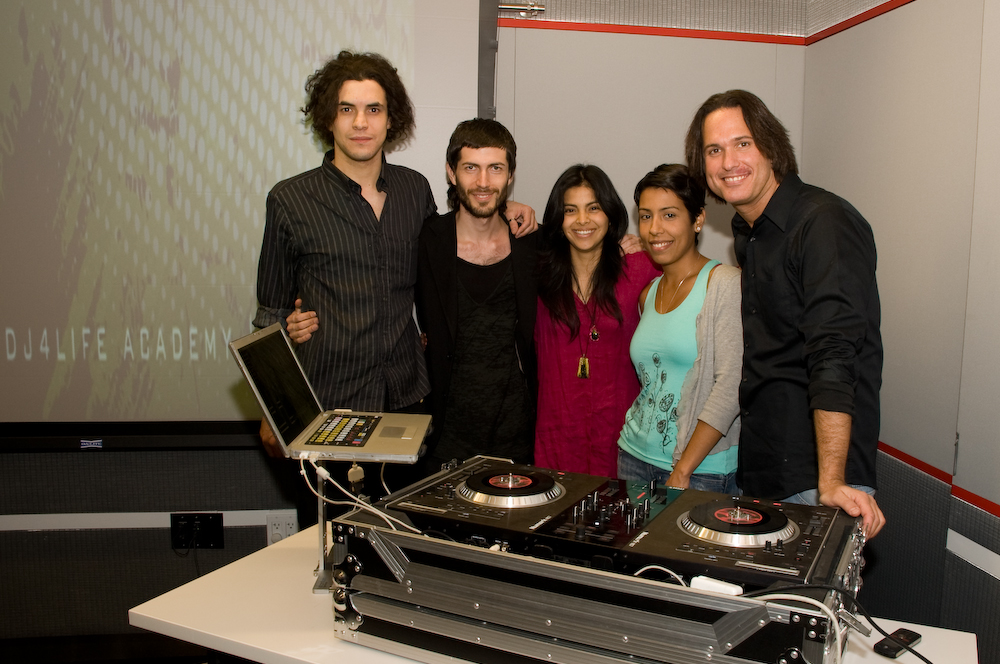 Photo 3: (Left to Right) Jorge Correa (student), Marcelo Baez of Nacotheque and a Heineken MezclaSonic DJ, Sandra Soto (student), Karina Pagan (student) and Carlos Fusaro instructor of DJ4LIFE