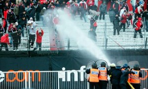 Outside of the stadium, police used fire hoses as water cannons against the angered crowd hoping to disperse the fans quickly. As fans fled from the stadium, they were greeted by baton and shield readied officers at every exit. In an effort to end the riot quickly, Police also fired tear gas and rubber bullets in-which the angry fans responded by throwing rocks at police.