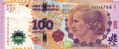 On 26 July 2012, to commemorate the sixtieth anniversary of Evita’s death, notes were issued in a value of 100 pesos. The controversial effigy of Julio Argentino Roca was replaced by that of Eva Duarte, making her the first actual woman to be featured on the currency of Argentina.