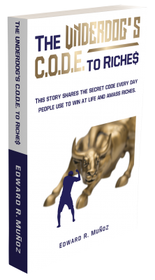 Each character in this book was written from the point of view from the people who I interviewed. In reality, it’s their story, told through a tale. I decided to make it a tale because the majority of these people never wanted their names mentioned. They wanted to remain anonymous. This is why the book has a sense of realness to it. Be prepared to be inspired, laugh and be moved to tears as you read this story of trials, tribulations, and triumph. Now for people who feel stuck, depressed or are going through a tough and challenging time, The Underdog’s Code to Riches can be a godsend. You know you are stuck or depressed if: 1. Being frustrated is the norm. 2. Confusion is your middle name. 3. You are constantly unmotivated. 4. You are constantly tired and depressed. 5. You feel lost in your life or business. 6. You are constantly worried about even the smallest things. 7. You think you will never amount to anything or accumulate riches If this list describes you, you should know that this book will make an enormous difference in your life. This book will take you on a journey of self discovery and you will become one with the main character. You will relate to his struggles and see how he is coached by his millionaire mentor in the book. You will feel like his mentor, “Mr. Rodriguez”, is giving you the coaching personally. I only say this because this is what other readers have told me they have experienced. This powerful coaching will empower you to go from “Stuck to Unstoppable” in all areas of your life once you discover the code. As a result of this effective style of coaching, you will find yourself making bold decisions and experiencing new breakthroughs way before you finish the book. Now for achievers and top performers, The Underdog’s Code to Riches can be revolutionary and transformative. You know you are an achiever or top performer if: 1. You are empowered. 2. You consider yourself a leader. 3. You achieve almost everything you set your mind to. 4. Advancing and moving forward are your top priorities. 5. You are very driven to succeed. 6. You are an accomplished person who knows how to take action. 7. You relate to yourself as a fearless leader. 8. You know yourself to be a courageous person. If this list describes you, you know that the best way to stay at the top of your game is by always seeking new ways to increase your personal growth. When you’re at the top of your game, you keep increasing sales, income, leadership skills, fulfillment and happiness. Getting outside of your comfort zone is what will keep you expanding, and this is exactly what this book will do for you. I know I have made some pretty huge promises, and soon you will see that I was not wrong for a single second. In closing, I want to say that the best is yet to come and I am excited for your next-level breakthroughs. I am excited in sharing The Underdog’s Code to Riches with you. I consider it an honor to share this journey with you. You should know that I did everything on my end to ensure this book makes an everlasting difference in your life. Hopefully it will live up to your expectations. Now let the journey begin! With love and gratitude, – Edward R. Muñoz