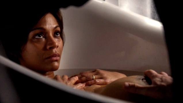 “You were chosen to be his mom,” says a mysterious benefactor to a pregnant Zoe Saldana, “By who?” she asks.